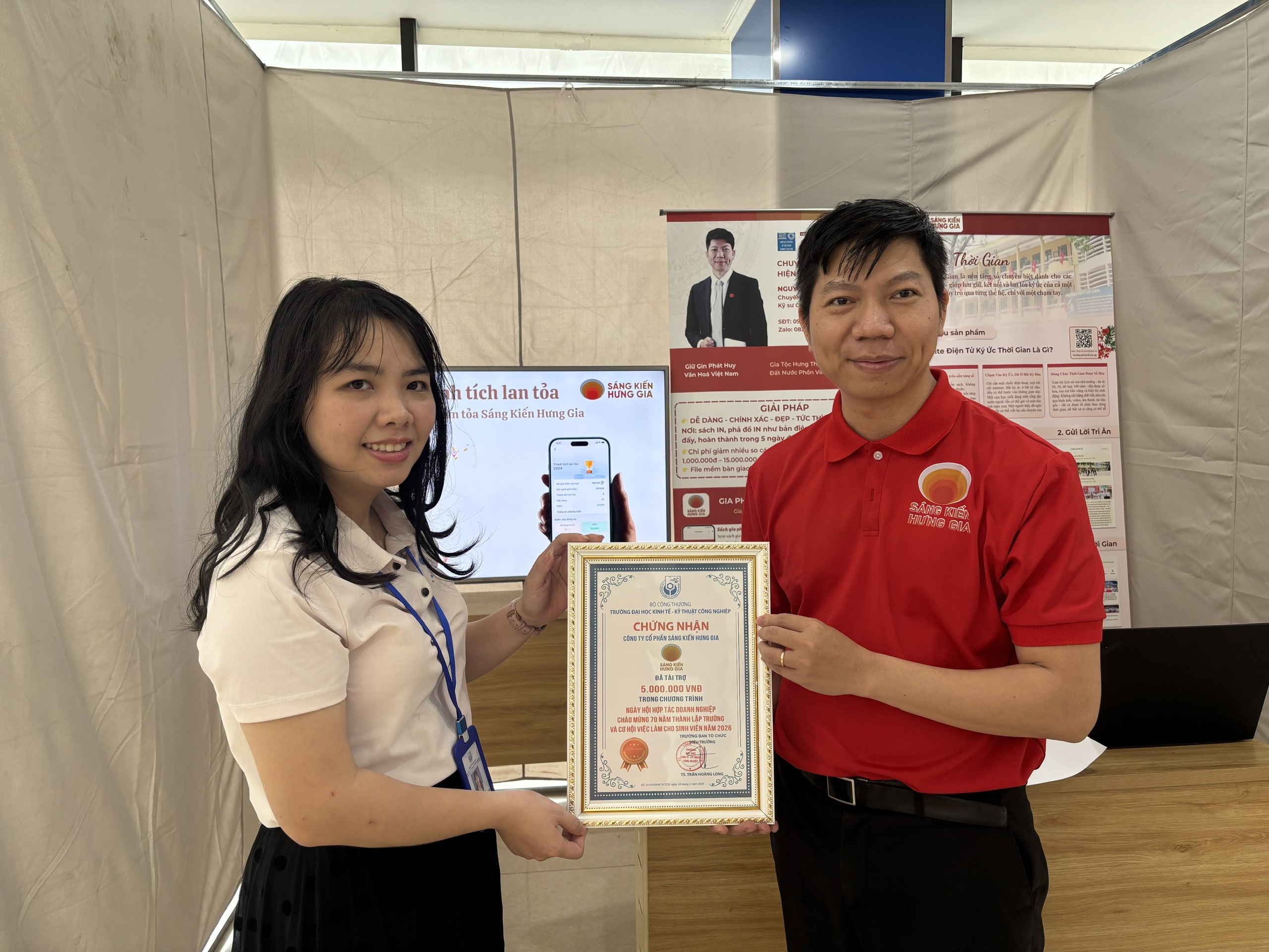 Tại ngày hội, Sáng Kiến Hưng Gia không chỉ tham gia trưng bày, giới thiệu năng lực doanh nghiệp mà còn chính thức ký kết Biên bản ghi nhớ hợp tác (MOU) với Trường Đại học Kinh tế – Kỹ thuật Công nghiệp. Thỏa thuận này đánh dấu bước phát triển quan trọng trong mối quan hệ hợp tác giữa hai bên, hướng tới mục tiêu tăng cường kết nối giữa đào tạo và thực tiễn, đồng thời mở ra nhiều cơ hội cho sinh viên tiếp cận môi trường làm việc chuyên nghiệp.